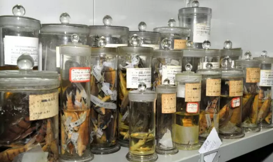 中科院水生生物博物馆里展示的长江鱼类,其中多数已经消亡。摄影/章轲