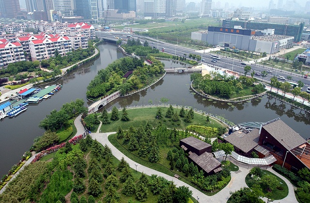 张家浜西起黄浦江,东至浦东运河,全长18.4公里,流经陆家嘴金融贸易区、竹园商贸中心、上海科技馆、花木行政文化中心和世纪公园,是浦东新区的一条骨干河流,也是上海首条生态景观河道,河水清澈见底,碧波荡漾,两岸市民休闲晨练,游人岸边垂钓,已成为一条记“防洪、排涝、生态、娱乐、休闲”为一体的多功能景观河道。