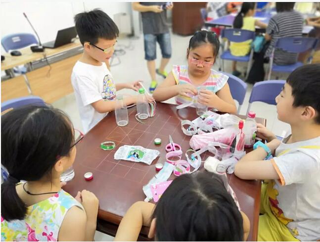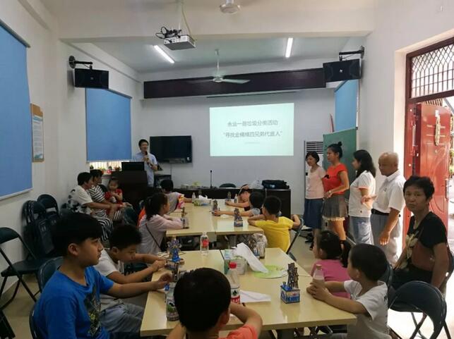 此次活动分为三个部分:垃圾分类相关知识的科普讲座、知识竞答及废弃物回收再利用手工制作。其中,垃圾分类科普内容涉及“桶桶四兄弟”的介绍、垃圾分类规则、生活实例、垃圾分类必要性等。浦东绿意巨轮老师通过生动有趣、贴近生活的语言使孩子们深刻理解了垃圾分类的重要性,并且在知识竞赛环节表现突出。随后是废物回收再利用手工制作,小朋友们利用手中废旧的玻璃瓶、粗毛线、彩色卡纸等材料,通过自己丰富的想象力与较高的动手能力在规定时间内进行花瓶的设计与制作。活动的最后,居委老师为获奖的小朋友们颁发了精美的礼品,并且确定了镇级比赛的参赛队伍。